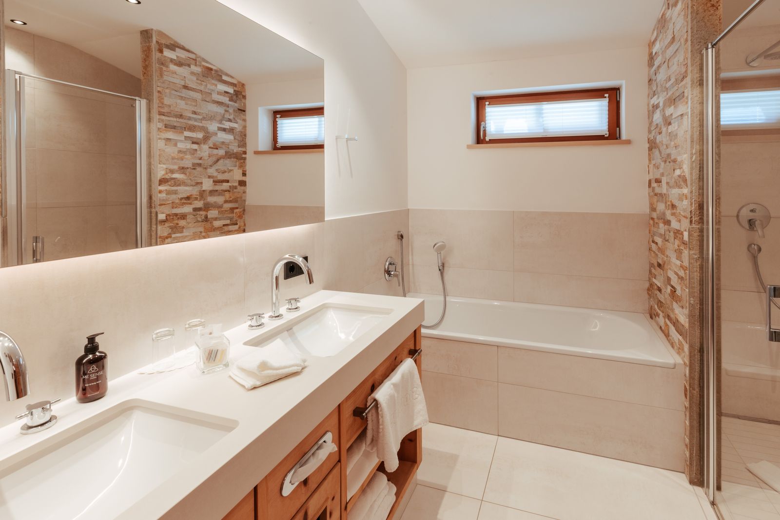 als 4-Bett-Zimmer möglich, Balkon, Sitzecke, Badezimmer mit Doppelwaschbecken, Badewanne, Dusche, WC, Föhn, Kosmetikspiegel, TV-Radio, W-Lan, Safe
